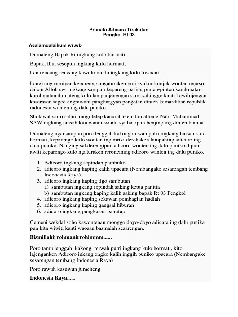Nomer setunggal inggih puniko pembukaan . Informasi tentang teks contoh untuk mc pernikahan dalam bahasa jawa halus bisa diadaptasikan dalam walimatul ursy atau ngunduh mantu pasrah . Kata pembukaan mc campursari di acara pernikahan tradisional jawa di gondang, purwantoro, wonogiri. Kata pembukaan mc campursari di acara pernikahan tradisional jawa di gondang . Mungkin saat ini sampean panjenengan sedang mencari referensi teks pidato ini bisa kalian jadikan referensi.